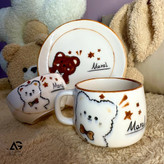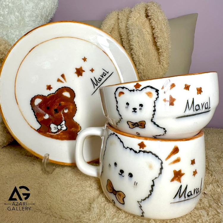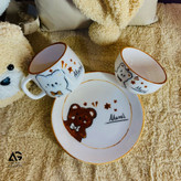 سرویس سرامیکی کودک و نوجوان تک نفره سه تیکه ماگ، پیاله و بشقاب طرح تدی